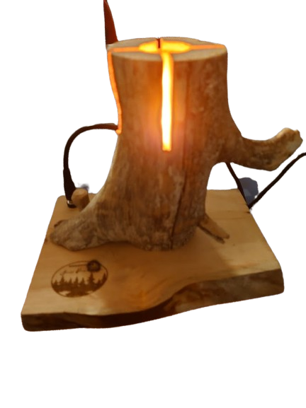 Tällaista ei ole varmaan kenelläkään muulla. Aidon liekin mukainen 12V led valo, joka ei kuitenkaan lämpene. Kaikki yksilöllisiä kelopuun mukaan. 12V muuntaja kuuluu mukaan. Valon voi sytyttää tai sammuttaa magneettikytkimellä